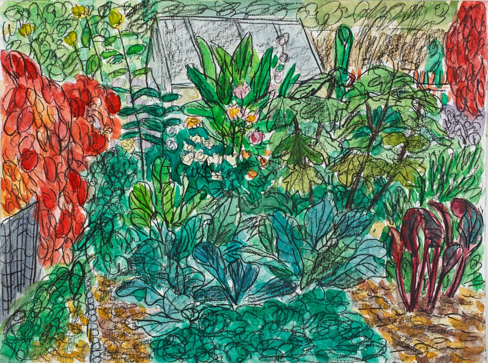 Kreide, Aquarell, Gouache auf Aquarellkarton